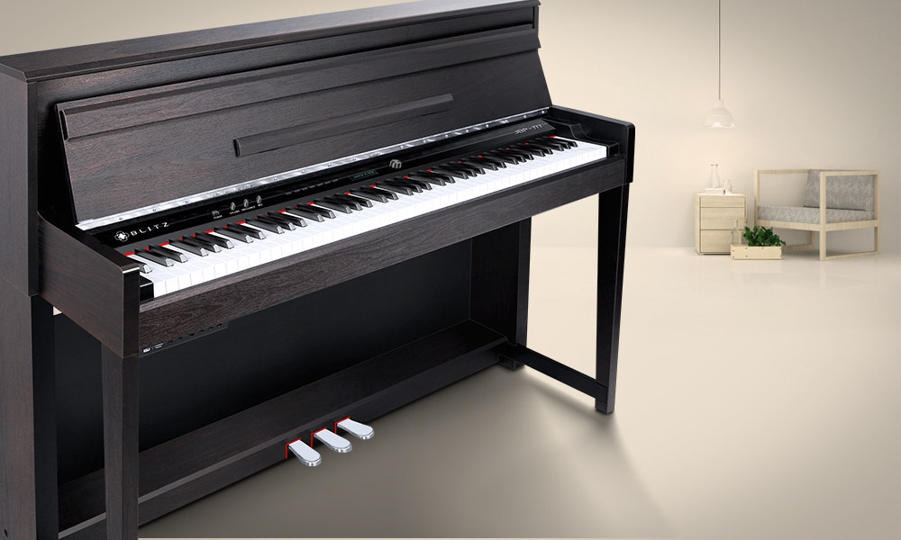 It is considered to be the highest in stimulating acoustic pianos. The beauty and elegance of unique design with the appearance of upright pianos and its classical design has added to its effect. This product also offers super easy access to microphone and headphone flash memory and tablet.